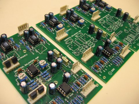 The Hux Universal Balancing Amplifier system is a dual channel, flexible solution to balancing, unbalancing and summing problems. The unit can be supplied as just a PCB, as a PCB with all required components or as a fully built and tested unit with the cable sets already made. The PCB is a high quality, double sided board and is screen printed to make life a little easier.