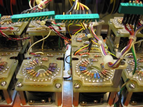 Inside the front panel of the Sontec, the rotary switches are huge, chunky and very positive feeling, to give some perspective the small rotary "Q" select switches shown at the front of this image are "normal" sized high quality units.