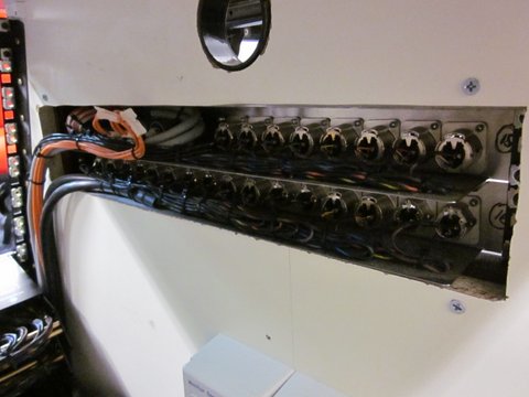 New 8-way multicore cable looms awaiting installation and final termination. We were able to pre terminate one end of these to D25 and XLR connectors ahead of time to speed things up a little. Every one of these cable is 14 metres long.